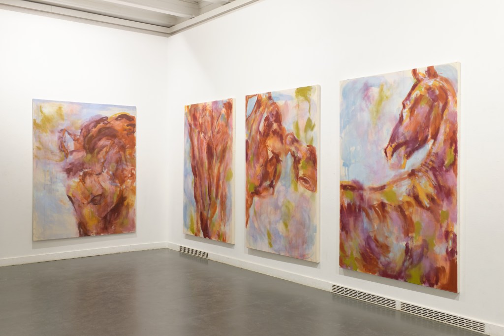 During her residency at GlogauAIR in Berlin, the artist experienced an important moment of transition within her artistic trajectory. At the beginning of the residency she initiated the series After the Gallop, a group of paintings exploring the memory of movement and the energy that lingers after an action — like the invisible trace a horse leaves behind after a gallop.